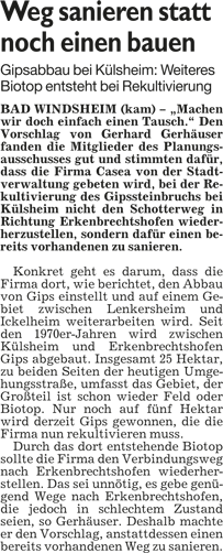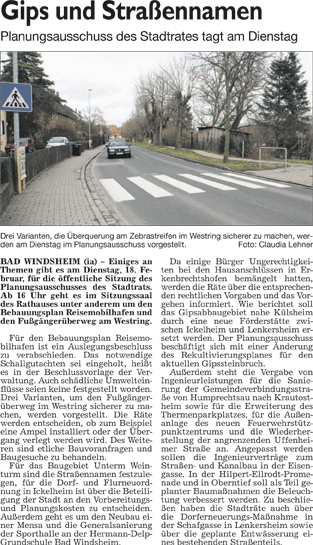 WZ 17. 2. 2014 "Gips und Straßennamen", "Gegen Anbau von gentechnisch verändertem Mais", "Gegenwind für Großprojekt"