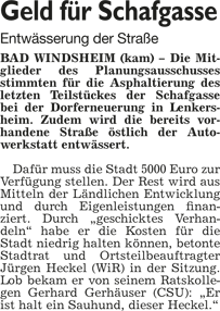 WZ 20. 2. 2014 "Miteinander mehr bewegen und erreichen", "Geld für Schafgasse", "Besseres Licht auf den Straßen"