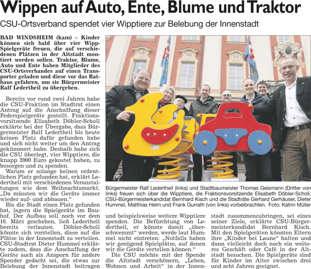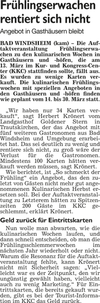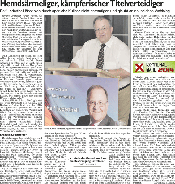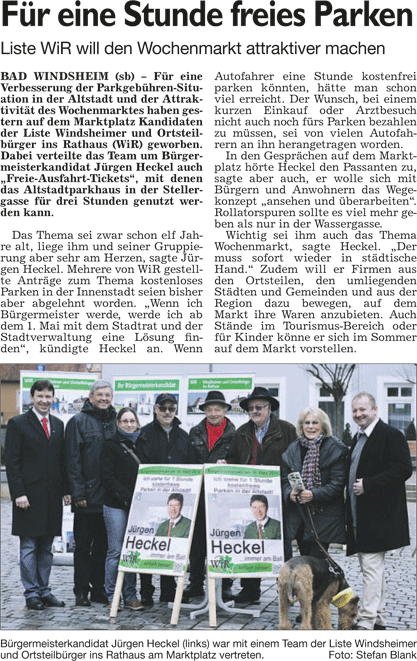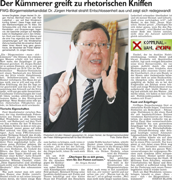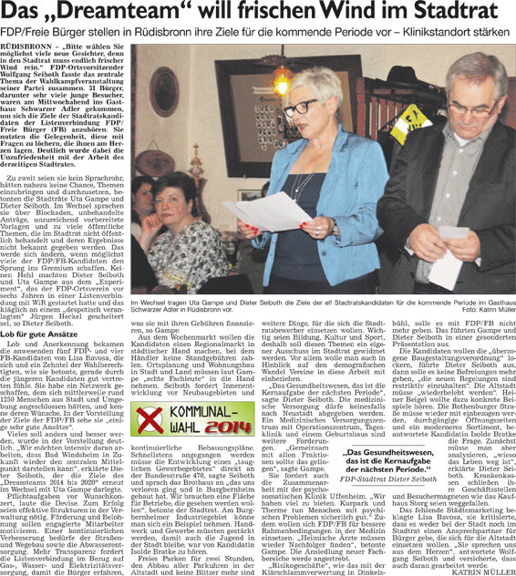 WZ 28. 2. 2014 "Das "Dreamteam" will frischen Wind im Stadtrat", "Frühlingserwachen rentiert sich nicht"