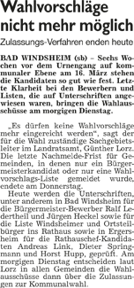 WZ 3. 2. 2014 "Wahlvorschläge nicht mehr möglich", "Auf die Plätze, kleben, binden"
