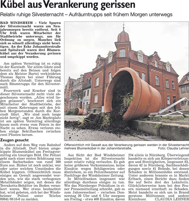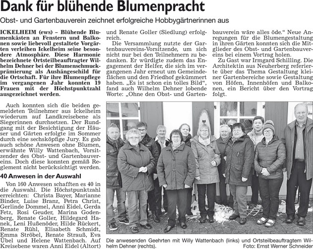 WZ 19. 1. 2016 "Dank für blühende Blumenpracht", "Kritik an neuer Dienstgruppe"
