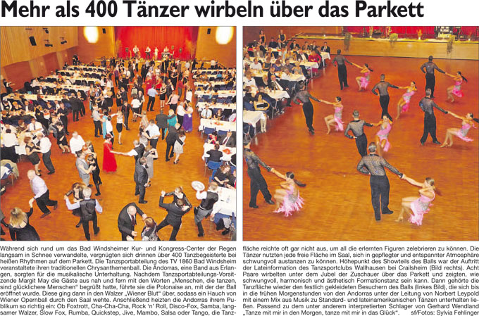 WZ 4. 1. 2016 "Mehr als 400 Tänzer wirbeln über das Parkett"