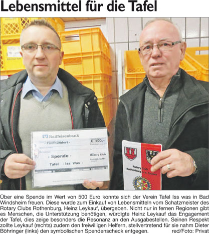 WZ 5. 1. 2016 "Gewässerpflege zum Schutz vor Hochwasser", "Lebensmittel für die Tafel"