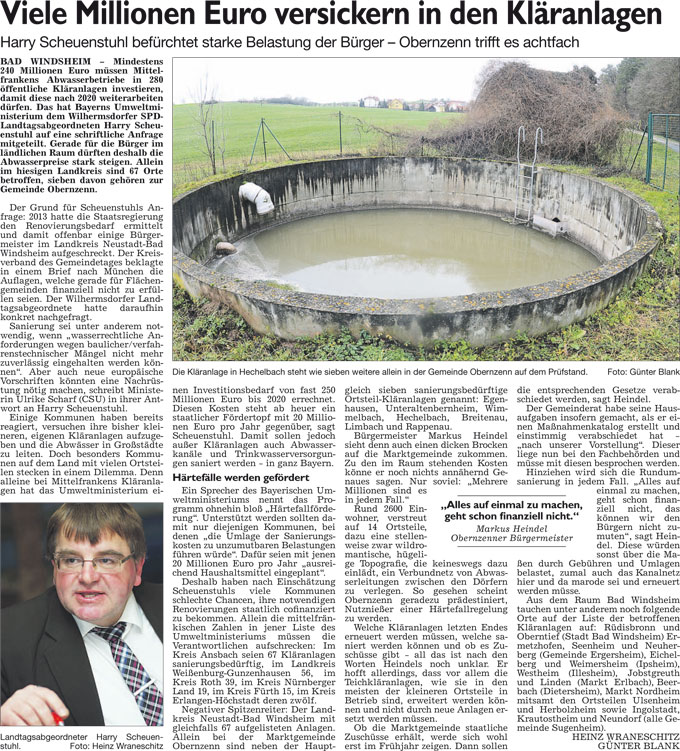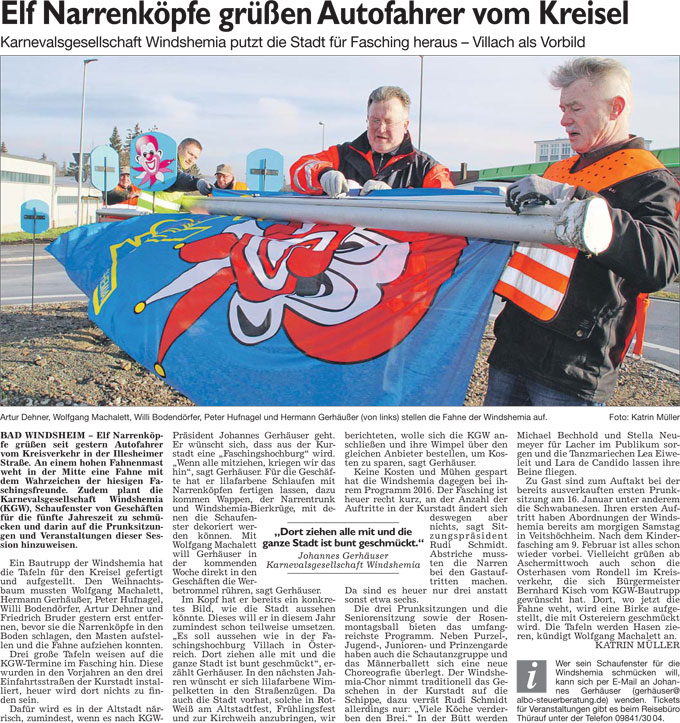 WZ 8. 1. 2016 "Viele Millionen versickern in den Kläranlagen", "Elf Narrenköpfe grüßen Autofahrer vom Kreisel"