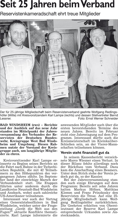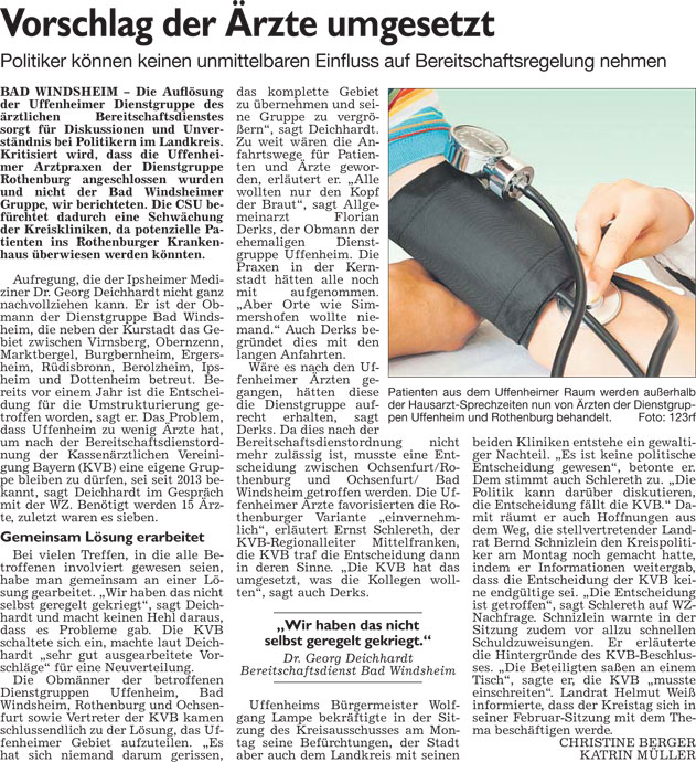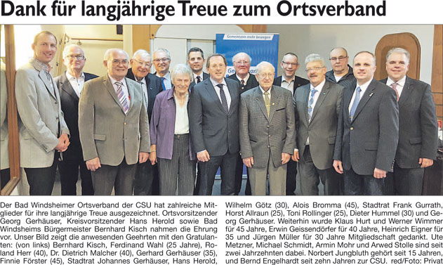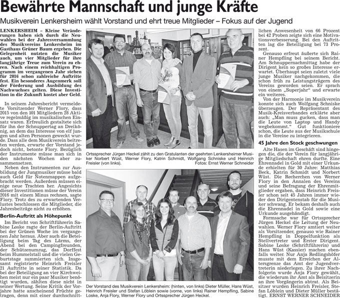 WZ 12. 1. 2016 "Patienten fahren länger zum Arzt", "Dank für langjährige Treue zum Ortsverband"