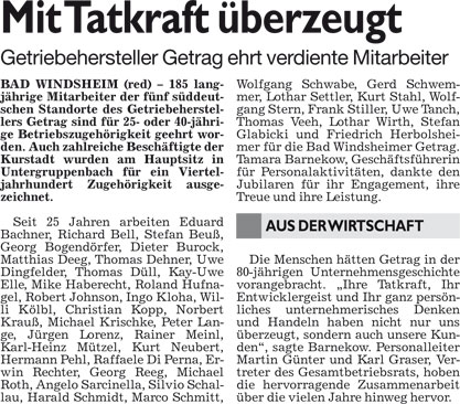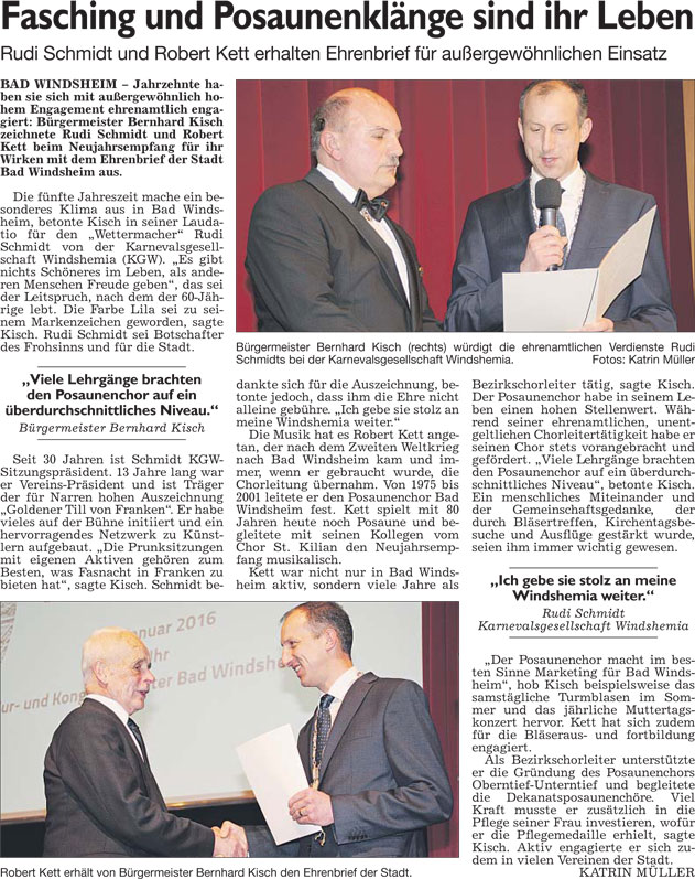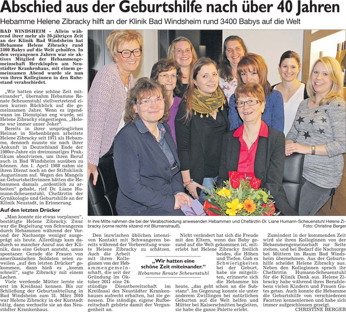 WZ 26. 1. 2016 "Fasching und Posaunenklänge sind ihr Leben", "Abschied aus der Geburtshilfe nach über 40 Jahren"