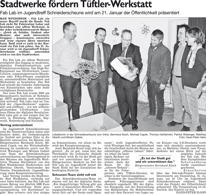 WZ 14. 1. 2016 "Seit 25 Jahren im Verband", "Beitrag zum Wohlstand der Gesellschaft", "Stadtwerke fördern Tüftler-Werkstatt"