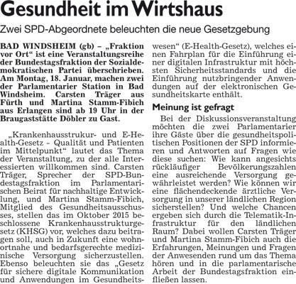 WZ 16./17. 1. 2016 "Gesundheit im Wirtshaus", "Reiser folgt auf Deutschmann"