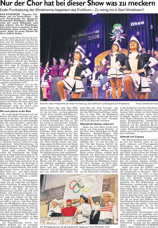 WZ 18. 1. 2016 "Nur der Chor hat bei dieser Show was zu meckern"