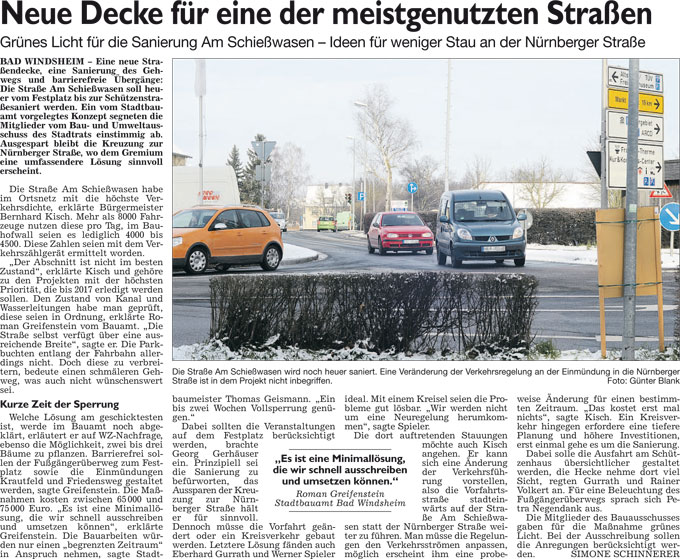 WZ 21. 1. 2016 "Neue Decke für eine der meistgenutzten Straßen"