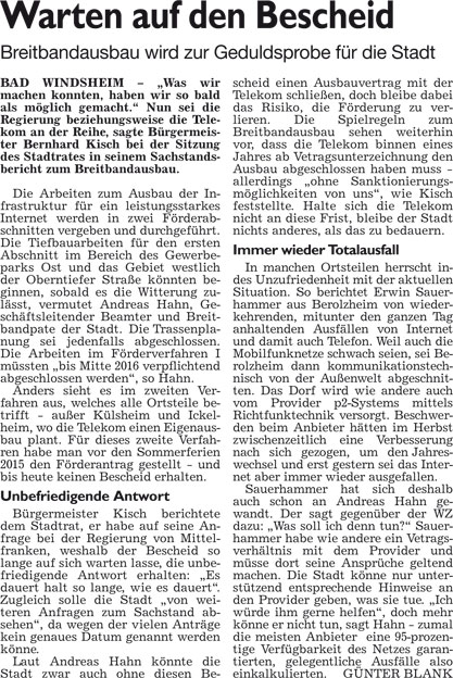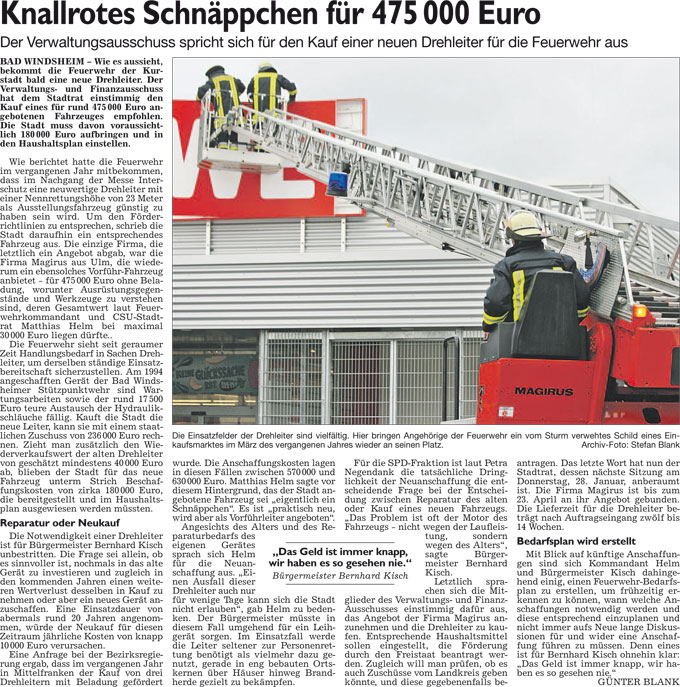 WZ 27. 1. 2016 "Stadtrat debattiert Drehleiterkauf", "Wundnetz durch ganz Nordbayern spannen"
