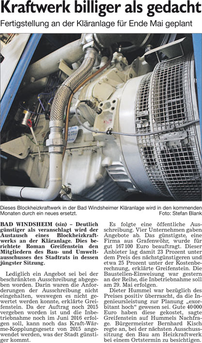 WZ 22. 1. 2016 "Knallrotes Schnäppchen für 475000 Euro", "Zweite Bahn auf dem Wiebelsheimer Berg", "Kraftwerk billiger als gedacht"