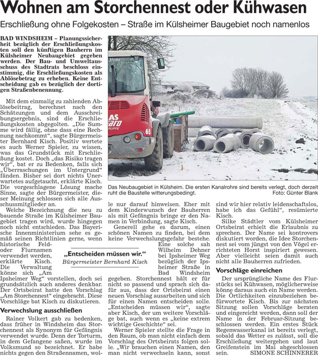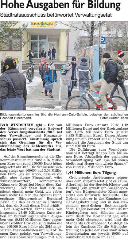 WZ 23./24. 1. 2016 "Wohnen am Storchennest oder Kühwasen", "Hohe Ausgaben für Bildung"