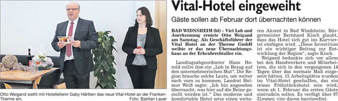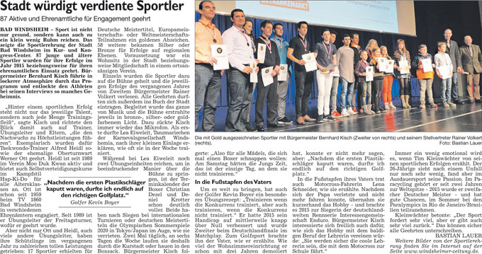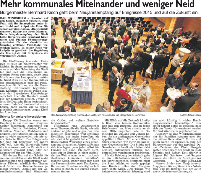 WZ 25. 1. 2016 "Mehr kommunales Miteinander und weniger Neid", "Stadt würdigt verdiente Sportler", "Vital-Hotel eingeweiht"