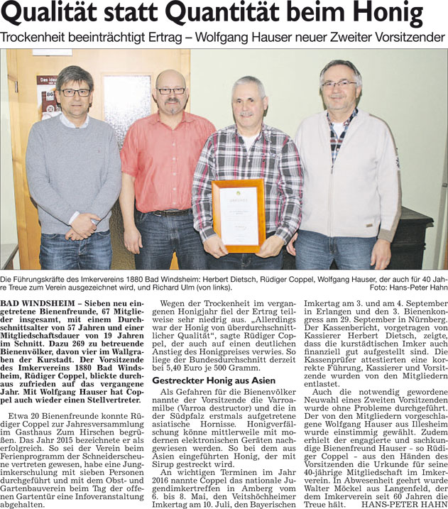 WZ 28. 1. 2016 "Die Schatzsucher an die Hand nehmen", "Qualität statt Quantität beim Honig", "Der Förderverein sammelt eifrig Geld"