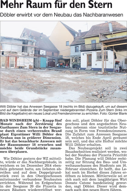 WZ 30./31. 1. 2016 "Warten auf den Bescheid", "Neue Drehleiter für die Feuerwehr", "Mehr Raum für den Stern"