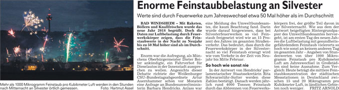 WZ 3. 1. 2018 "Enorme Feinstaubbelastung an Silvester"