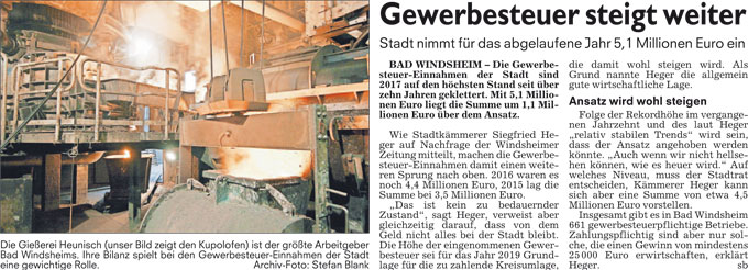 WZ 4. 1. 2018 "Gewerbesteuer steigt weiter", "Wirbel um Hubschrauber"