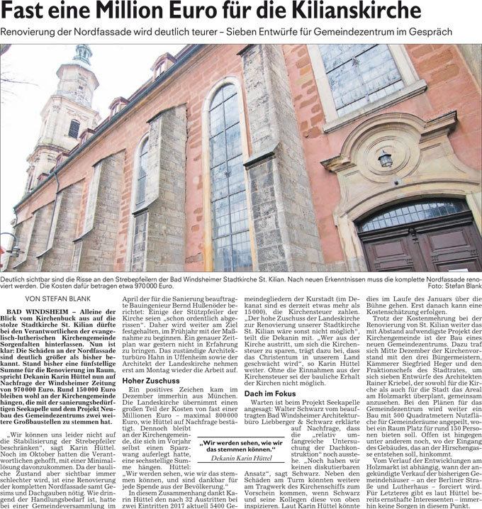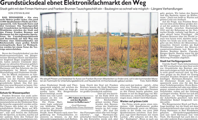 WZ 5. 1. - 7.1. 2018 "Grundstückdeal ebnet Elektronikfachmarkt den Weg", "Fast eine Million Euro für die Kilianskirche"