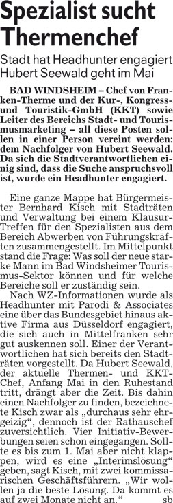 WZ 9. 1. 2018 "Drei Kurstädte zum Ertasten und Erkunden", "Spezialist sucht Thermenchef"