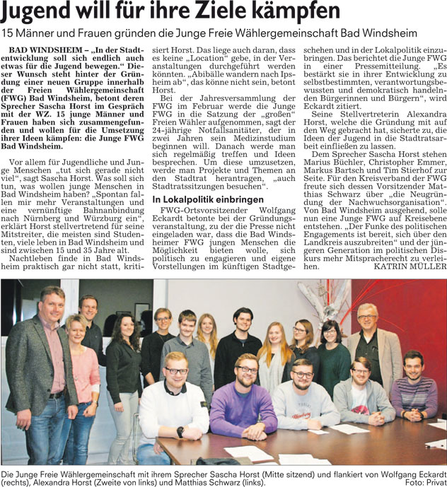 WZ 13./14. 1. 2018 "Jugend will für ihre Ziele kämpfen"