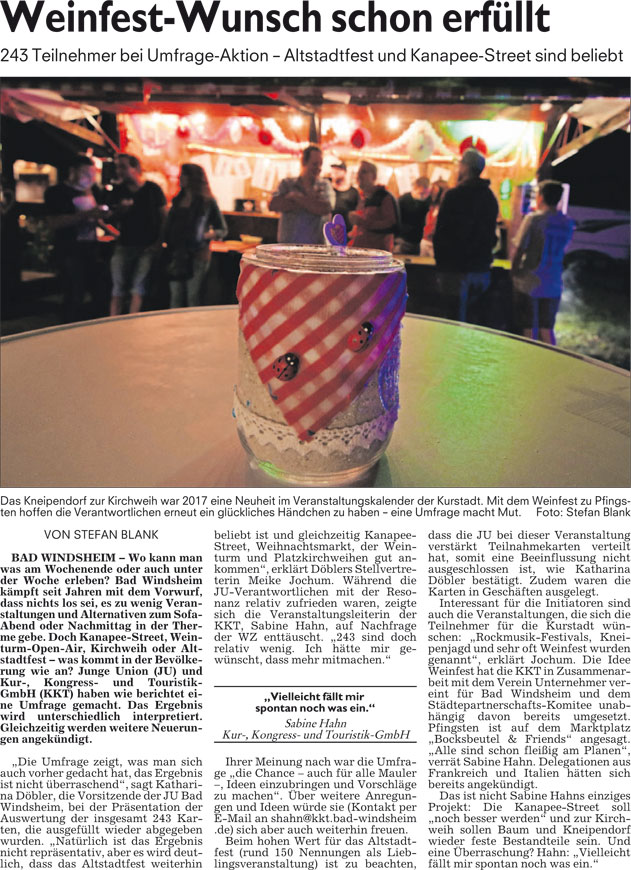 WZ 17. 1. 2018 "Weinfest-Wunsch schon erfüllt"