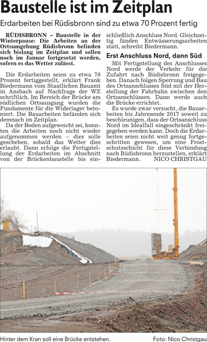 WZ 18. 1. 2018 "Baustelle ist im Zeitplan", "Bürgermeister hängen in der Luft"