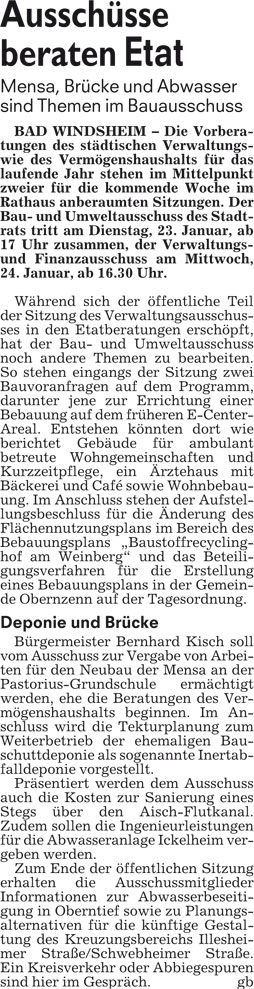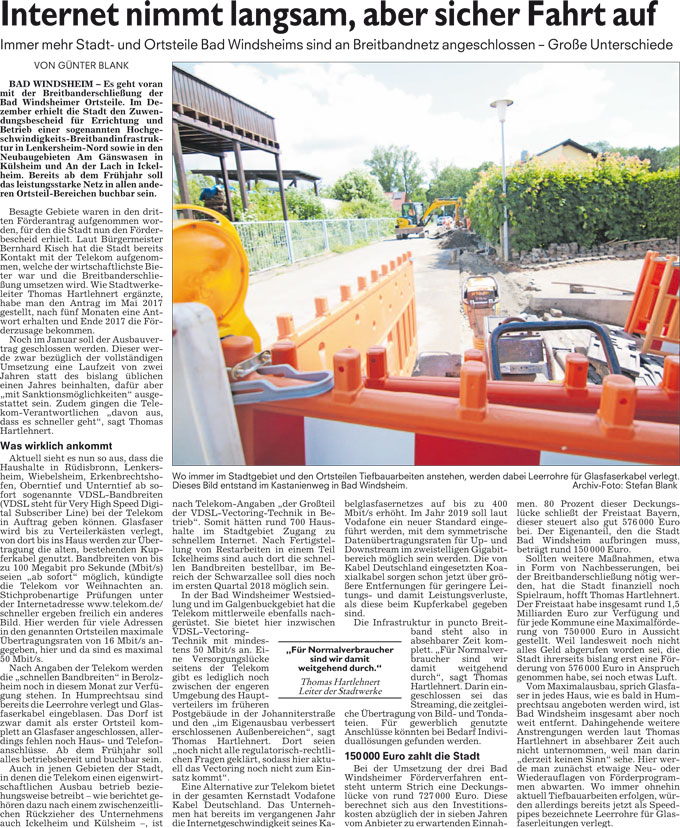 WZ 19. 1. 2018 "Ausschüsse beraten Etat", "Internet nimmt langsam, aber sicher Fahrt auf"