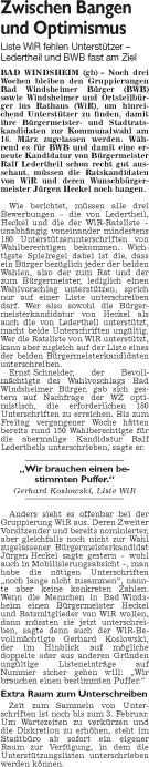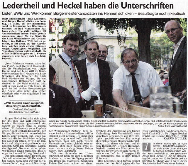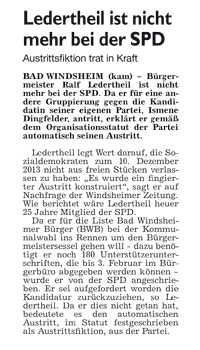 WZ 28. 1. 2014 "Ledertheil und Heckel haben die Unterschriften","SPD unterstützt"