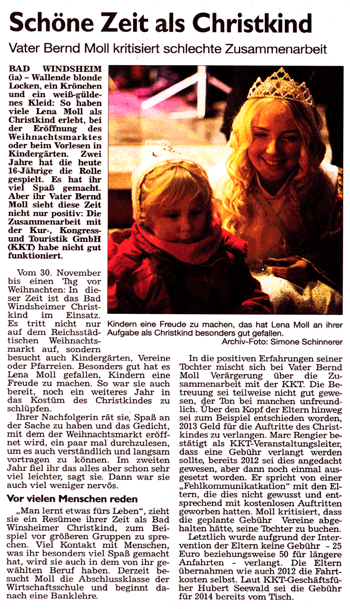 WZ 3.1.2014 "Schöne Zeit als Christkind"