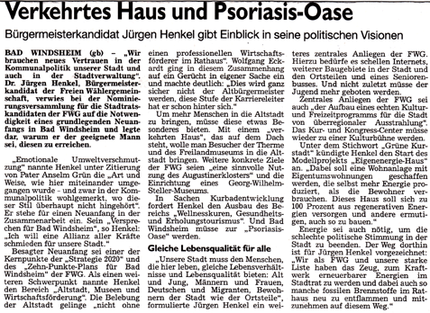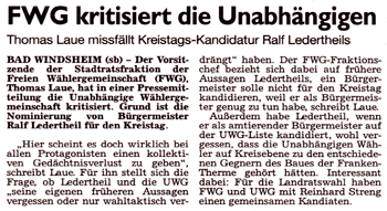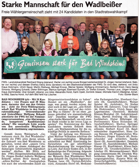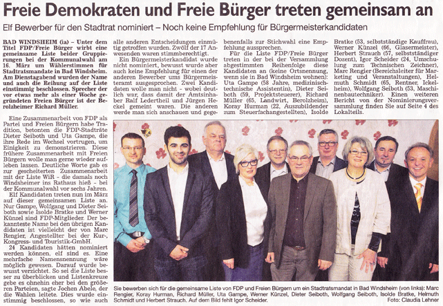 WZ 23. 1. 2014 "Freie Demokraten und Freie Bürger treten gemeinsam an"