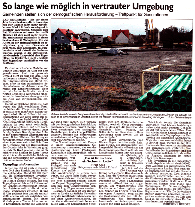 WZ 4/5.1.2014 "FWG kritisiert die Unabhängigen"," So lange wie möglich in vertrauter Umgebung"
