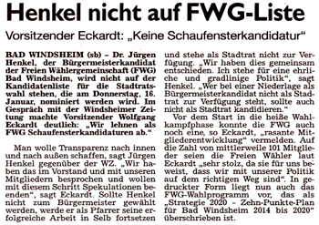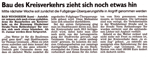 WZ 8.1.2014 "Bau des Kreisverkehrs zieht sich noch etwas hin","Henkel nicht auf FWG-Liste"