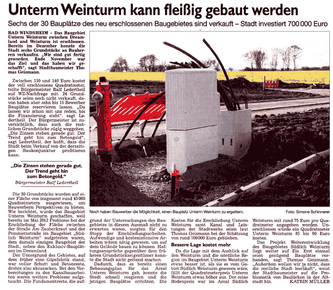WZ 9.1.2014 "Unterm Weinturm kann fleißig gebaut werden"