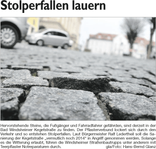 WZ 14.1.2014 "Eine digitale Führung durch die Altstadt","Stolperfallen lauern","UWG verteidigt ihren Kandidaten"