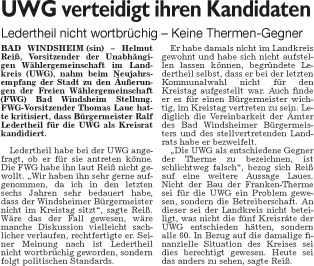 WZ 11/12.1.2014 "Mit drei Doppelbelegungen für den politischen Frieden","Ledertheil ist nicht mehr bei der SPD","Bad Windsheim stärken"