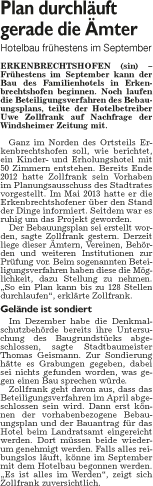WZ 15.1.2014 "Zwischen Bangen und Optimismus","Plan durchläuft gerade die Ämter"