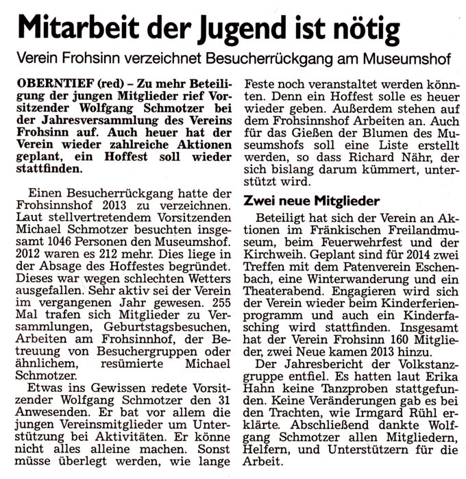 WZ 13.1.2014 "Gute Stimmung beim Neujahrsempfang","Unter dem Mandat der Finanzierung"