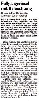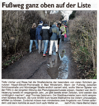 WZ 16.1.2014 "Mitarbeit der Jugend ist nötig","Fußgängerinsel mit Beleuchtung","Fußweg ganz oben auf der Liste","Kein wildes Parken"