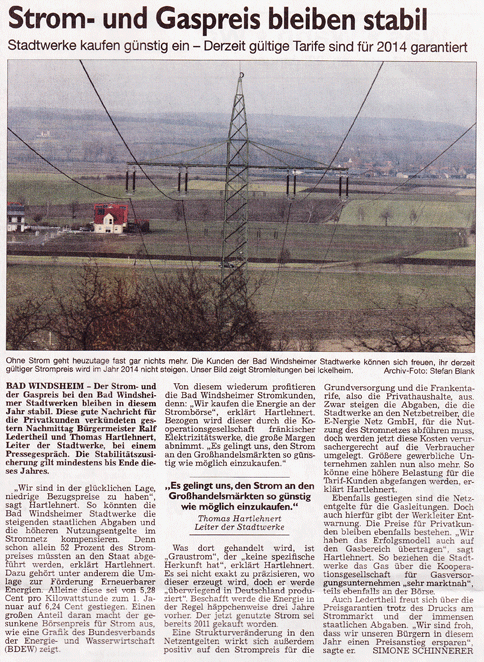 WZ 22.1. 2014 "Alle Kandidaten sind dabei","Strom- und Gaspreis bleiben stabil"