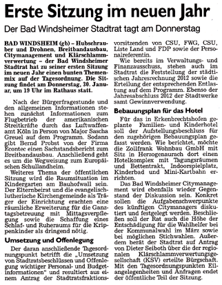 WZ 27. 1. 2014 "Erste Sitzung im neuen Jahr"