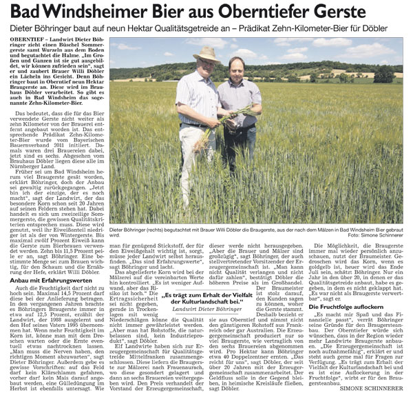 WZ 01. 7. 2014 "Aussteiger und Absteiger, Popstars und Populisten","Bad Windsheimer Bier aus Oberntiefer Gerste"