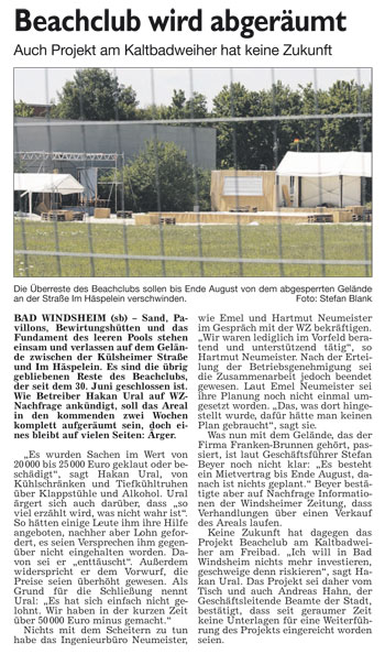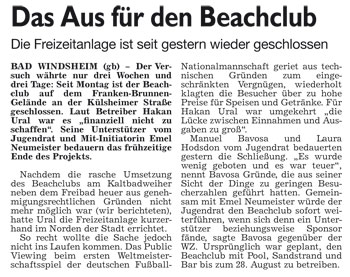 WZ 02. 7. 2014 "Das Aus für den Beachclub","Im Juli noch einmal gesperrt", "Mehr Leben in den Schulalltag integrieren", "Zwangspause für Echokardiografie"