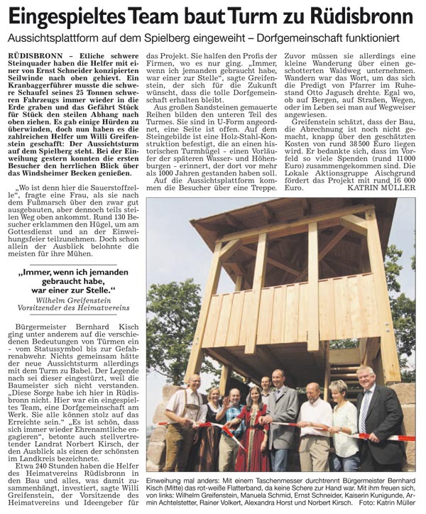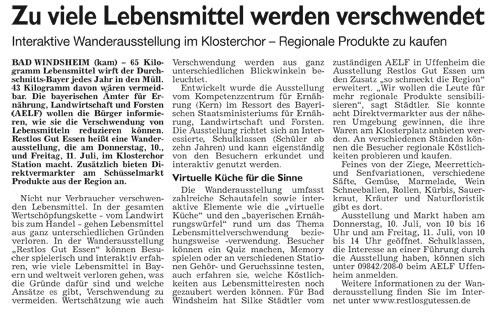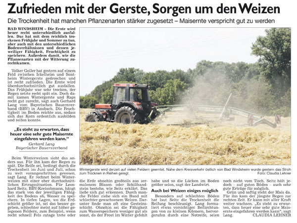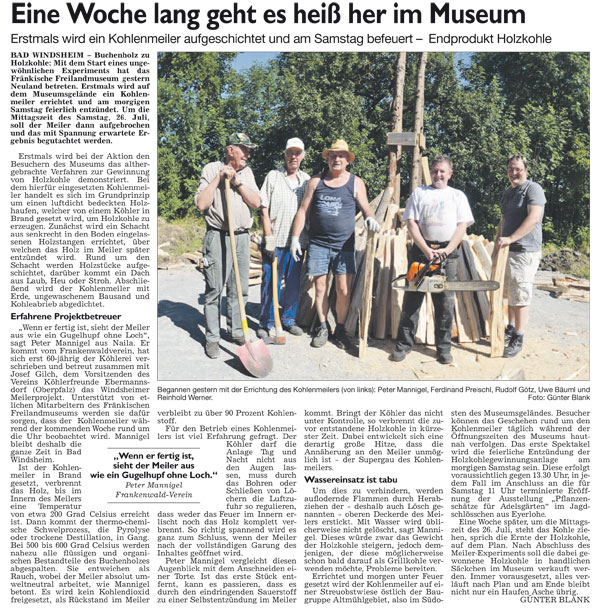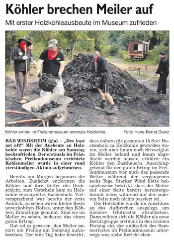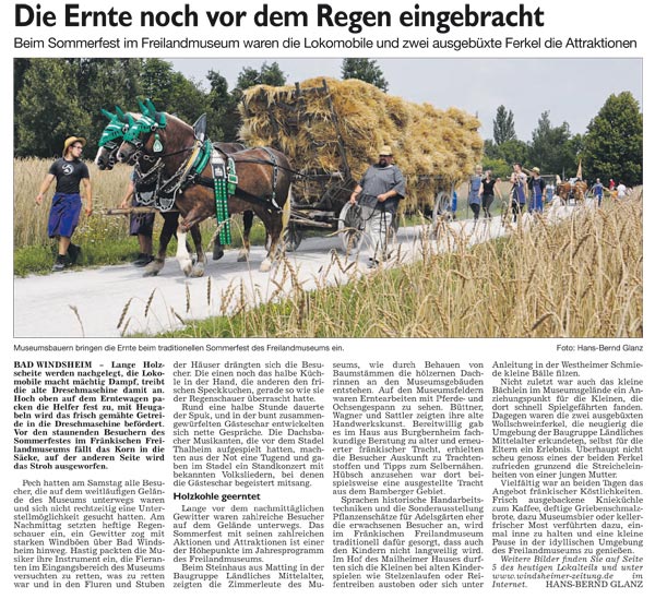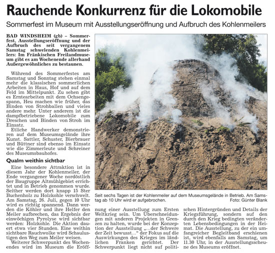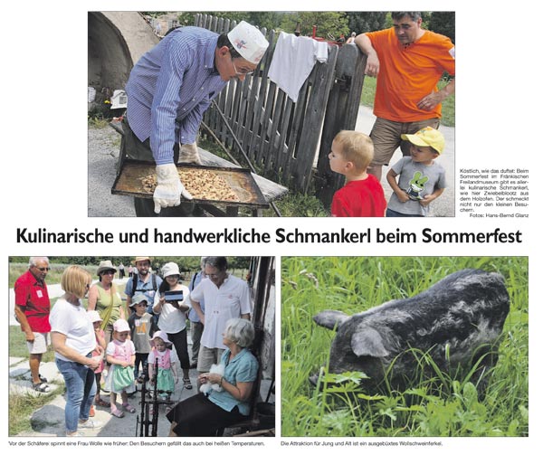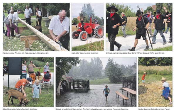 WZ 28. 7. 2014 "Kulinarische und handwerkliche Schmankerl beim Sommerfest 1", "Kulinarische und handwerkliche Schmankerl beim Sommerfest 2", "Eingespieltes Team baut Turm zu Rüdisbronn", "Köhler brechen Meiler auf", "Die Ernte noch vor dem Regen eingebracht", "Kurze Zeit Land unter", "Zwei Neue im Landratsamt"