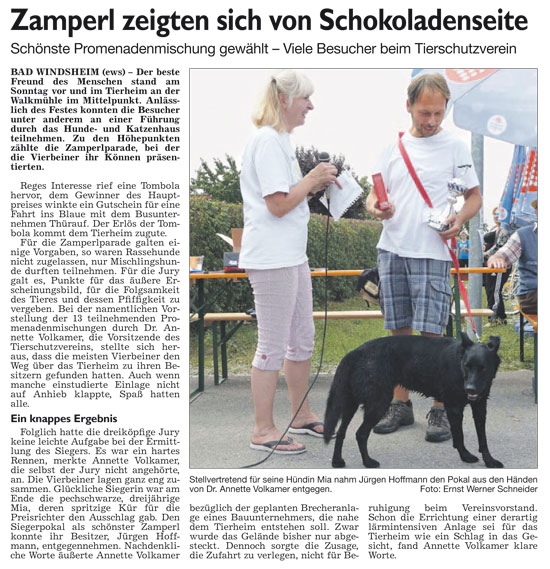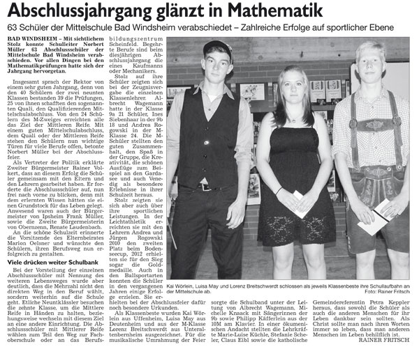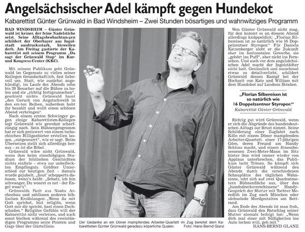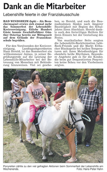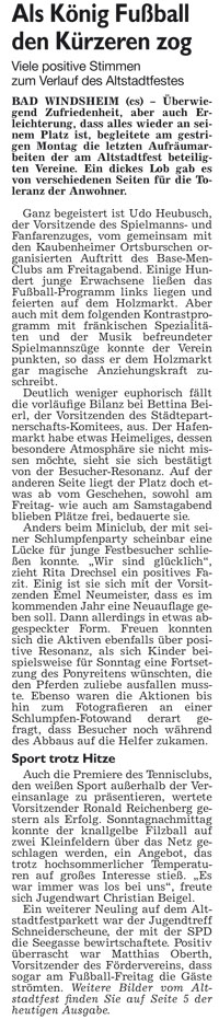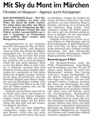 WZ 30. 7. 2014 "Mit Sky du Mont im Märchen", "Vor allem für die Külsheimer"