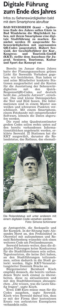 WZ 10. 7. 2014 "Informationspunkte sollen Tourismuspreis holen","Brisantes beim Parteitag", "Digitale Führung zum Ende des Jahres"