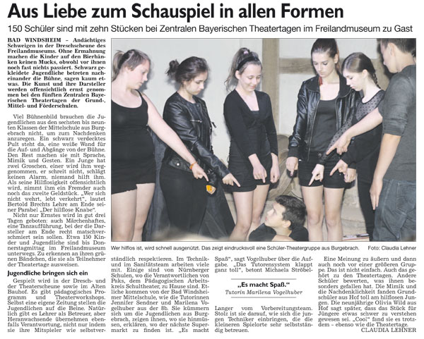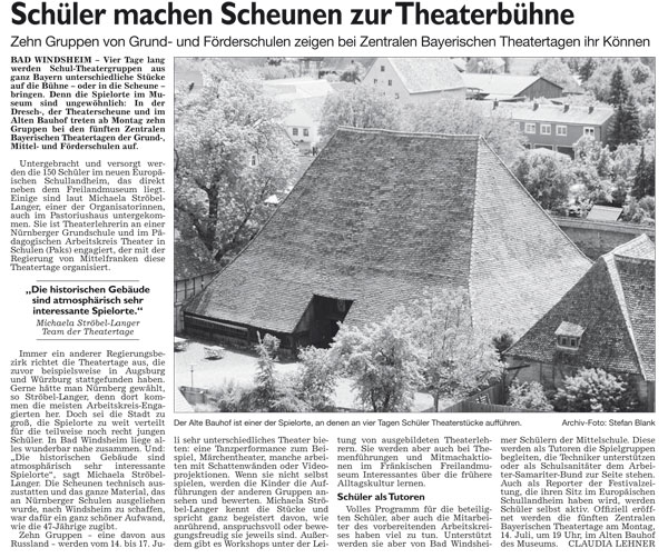 WZ 11. 7. 2014 "Schüler machen Scheune zur Theaterbühne"