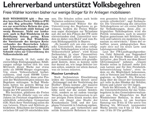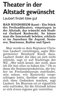 WZ 12. 7. 2014 "Theater in der Altstadt gewünscht", "Lehrerverband unterstützt Volksbegehren"