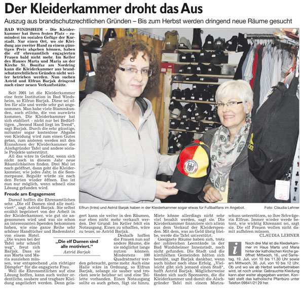 WZ 15. 7. 2014 "Der Kleiderkammer droht das Aus", "Die Region erkunden", "Angelsächsischer Adel kämpft gegen Hundekot"