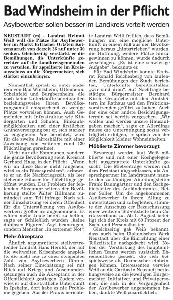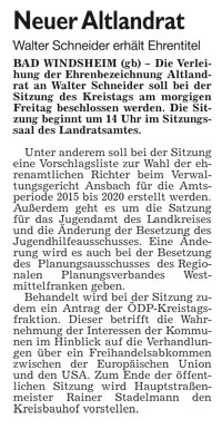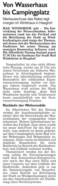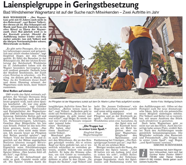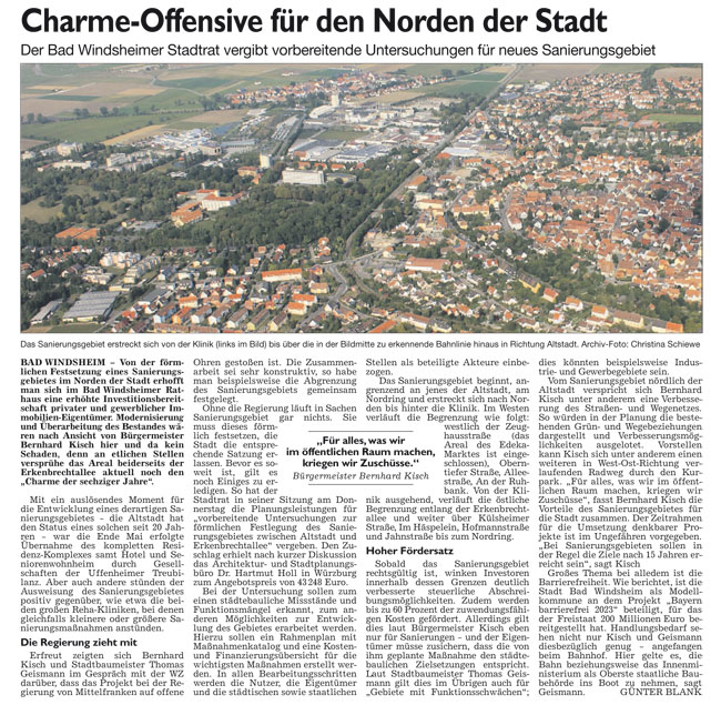 WZ 16. 7. 2014 "Bad Windsheim in der Pflicht", "Zuhören, betrachten, nachdenken", "Aus Liebe zum Schauspiel in allen Formen", "Von Wasserhaus bis Campingplatz"